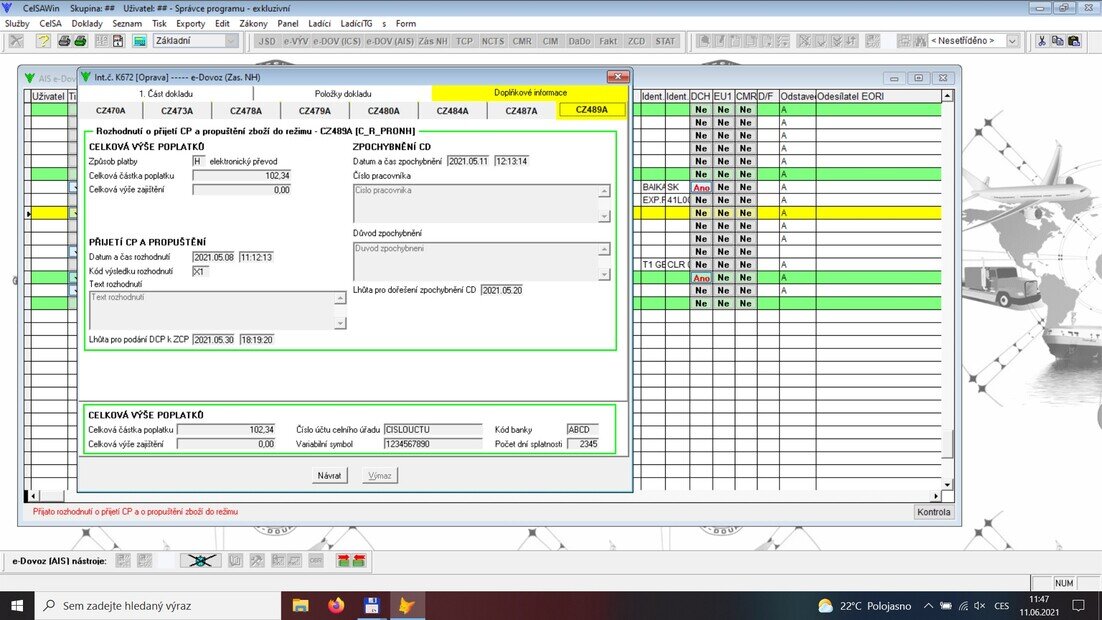 pro komplexní zpracování a vyhotování elektronických zpráv celních a přepravních dokladů, hlášení Intrastat, elektronických a tiskových výstupů a podkladů pro klienty a externí IS (SAP)