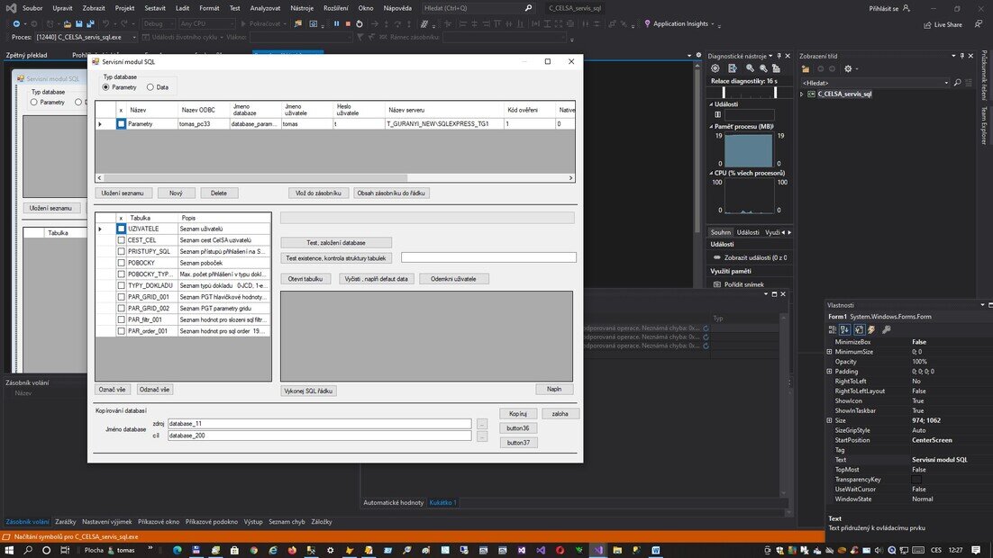 Web app provozovaná v internetovém prostředí s daty na SQL serverech, v cloudu.