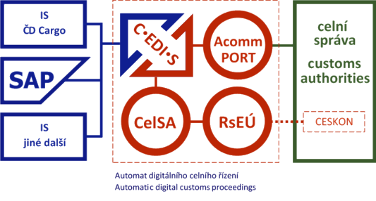 Datové rozhraní pro propojení celního IS Admija - sw Celsa a jeho modulů na informační systém České dráhy a.s., obdobně, volitelně i pro DBCargo CZ.