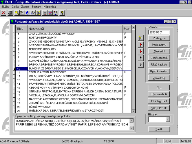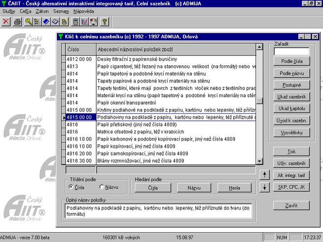 Sazebník, ČAAIT, Tarif, Taric, ABCD třídění - app nebo modul k programu Celsa®Win, Celsklad®Win